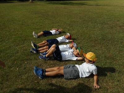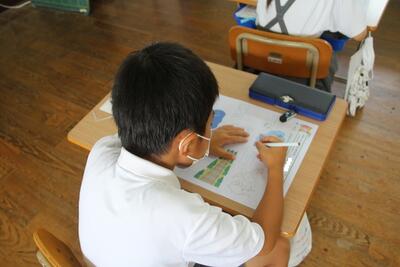 生活科でまちたんけんに出かけました。今回は、学校の近くにある石橋公園芝生広場に行きました。虫を追いかけたり、遊具で遊んだり、氷川を眺めたりして、東陽町の自然を満喫しました。教室に帰って、たんけんマップにまとめていきます。