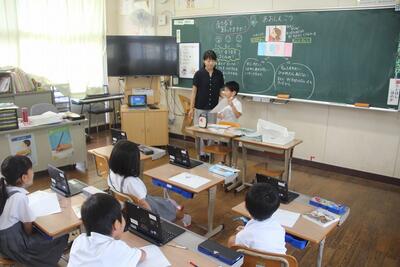 特別の教科道徳では、郷土愛について学習しました。教材文「まちたんけん」を参考に、東陽町の好きなところを探しました。タブレットPCの発表ノートに自分の考えをまとめました。みんなで好きなところを共有しました。学習後には、家の人とも東陽町の好きなところについて会話が弾んだことでしょう。