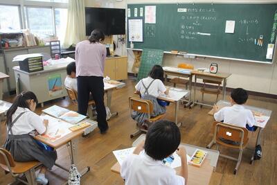 小学校に入学して約3週間が経過しました。学校生活では初めての経験ばかりですが、1年生はがんばっています。登校して元気に「おはようございます」と伝えたり、ランドセルから道具を出して机の引き出しの中に入れたりなど、一つ一つできることを増やしています。この日は、校歌の練習をしたり、あいさつや友達と仲良くなる言葉かけなどについて考えたりしました。1年生のがんばりる姿が、周りのみんなにパワーを与えてくれています。