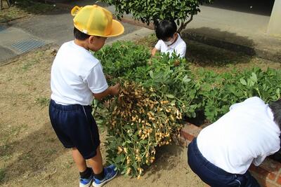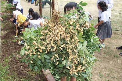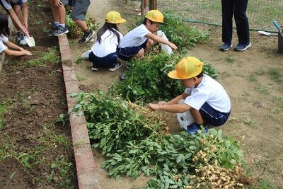生活科では、落花生の収穫を行いました。たくさん実った落花生を前に1年生は大喜びでした。落花生一つ一つを丁寧にとってビニール袋に入れました。収穫の喜びを体験しました。自然の恵みに感謝した1年生です。