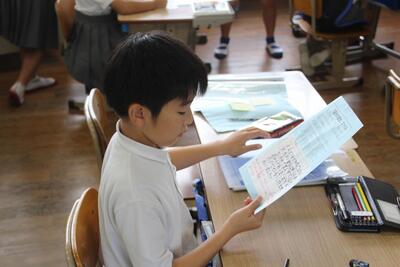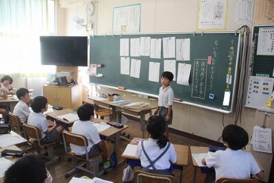 国語科では、あまんきみこ作「ちいちゃんのかげおくり」を使って、場面をくらべながら読み、感じたことをまとめる学習をしています。この日は最初の読後感を出し合いました。読み終わって感じたことやその理由を出し合いました。学習後にこの読後感が変容するのかとても楽しみです。