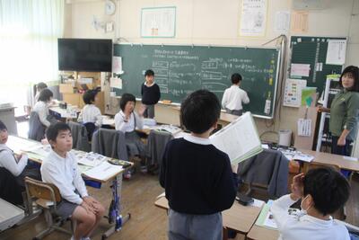 国語科では、説明文を読んで感想を持ち、伝え合う学習をしています。この日は、「中」の段落の読み取る活動を行いました。キーワード・接続語・指示語などを手がかりに、段落の関係を考えました。学習リーダーを中心に読み取ったことを伝え合いました。