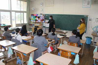 この日は、ALTのA先生との最後の授業でした。そこで、感謝の言葉を英語で一人一人伝えました。難しい英語については先生がサポートしました。”Thank you so much.” など臆することなく伝える5年生の姿に、これまでの学習の積み重ねを感じました。