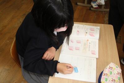 算数科では、整数と小数の学習が終わりました。この日は練習問題に取り組み、みんなで答え合わせなどを学習リーダーを中心に進めました。練習問題について十進法の仕組みや小数点の移動の仕方などを考えながら、みんなで協力して学習しました。