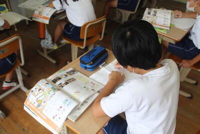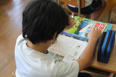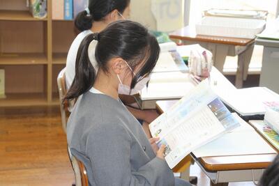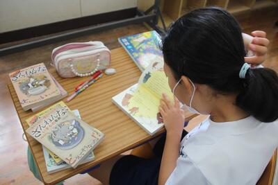 国語科では、自分で選んだ作家や作品を紹介し合う学習をしています。この日は、紹介したい本を探す活動をしました。図書室などからたくさんの本を教室に持ち込み、読書をしました。どんな作品を紹介してくれるのか、とても楽しみです。