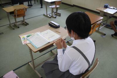 2学期がスタートしました。国語と算数の確認テストを行いました。このテストでは、夏休みの頑張りや学習の定着状況を確認します。このテストなどをもとに、今後の学習支援について検討し、児童の個別最適な学びへとつなげていきます。