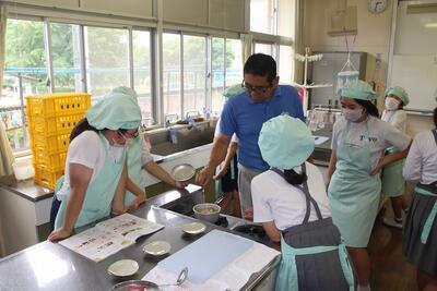 家庭科では、初めての調理実習を行いました。今回はガスコンロを使ってお湯を沸かすことや、青菜のゆで方について学習しました。自分たちでお茶を入れたり、ゆでたほうれん草を食べたりしました。とてもおいしそうでした。