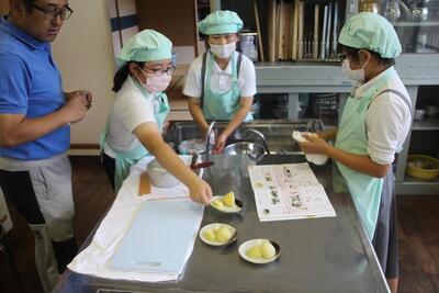 家庭科では、ゆでる調理実習を行いました。前回は青菜(ほうれん草)でしたが、今回はじゃがいもでした。水の中にじゃがいもを入れたり、ゆでた後に皮をむいたりしたので、ほうれん草の場合とは手順が異なりました。じゃがいもがゆであがったかどうか、竹串を使って念入りに確かめました。