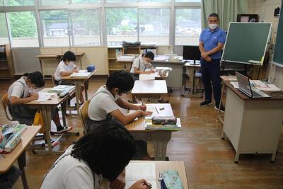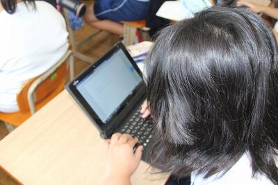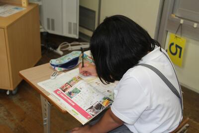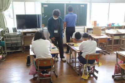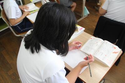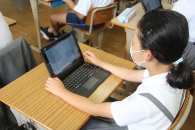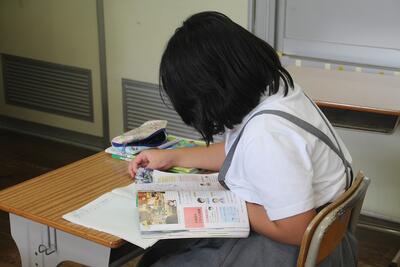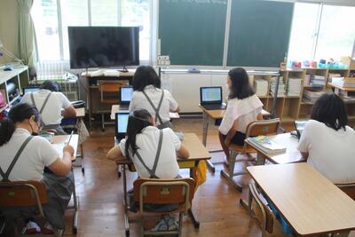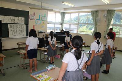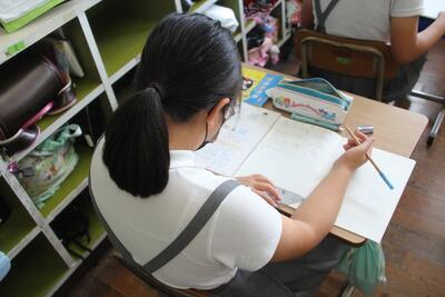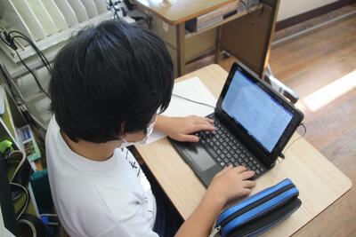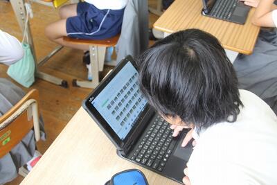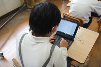 1学期末に学校で行うことの一つに「1学期を振り返って」の作文を書く学習があります。1学期を振り返ってがんばったことや、2学期にがんばることについて、振り返りを行いました。学習のことや学校生活のこと、委員会活動のことなどについて、タブレットPCに入力したり原稿用紙に書いたりしました。終業式当日には5年生の代表者が発表しました。