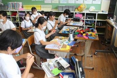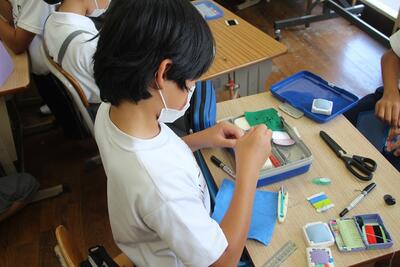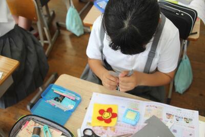 6/23にお伝えした続報です。家庭科では、裁縫の学習をしています。玉留めや玉結び、なみ縫いなどができるようになり、フェルトを使って作品づくりをしました。色や形を考え、自分の力で縫い合わせていきました。作品が完成すると達成感を味わうことでしょう。