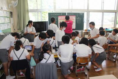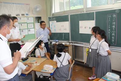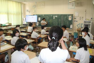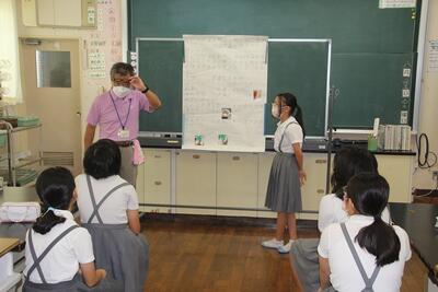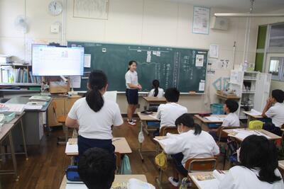理科では、夏休みの宿題の一つだった自由研究の発表を行いました。ミニトマトの甘さ、飲み物などの凍らせ方、ショウガ湯の効能、バターの作り方、スライムのかたさなど、児童が自主的に考え研究しました。発表後には、聞いた児童からお返しの言葉を伝えました。楽しい発表会になりました。