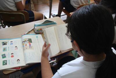国語科では、物語「なまえつけてよ」を使って、「登場人物どうしの関わりをとらえ感想を伝え合おう」という学習を行いました。登場人物の会話や行動などから心情を捉えたり、人物像や物語の全体像を具体的に想像したり、表現の効果を考えたりしました。ここで学習したことを今後の読みに生かしていきます。