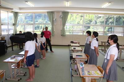 音楽科では、「すてきな一歩」の曲の感じを生かして明るい声で歌うことや、「小さな約束」の曲でリコーダーの音の重なり合うひびきを感じとりながら演奏する学習を行っています。歌声も演奏も向上している5年生です。