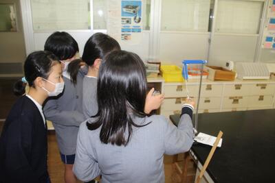 理科では、ふりこの性質について学習しています。この日は、振り子が一往復する時間と振れ幅について実験しました。振れ幅の条件だけを変えて、振り子を動かし、10往復する時間を計時しました。角度を変えることと10往復をカウントすることが難しいようでした。