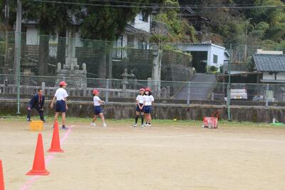 体育科では、ベースボール型ゲームを学習しています。前回からのルールを変更して、得点の仕方やアウトの取り方がより分かりやすくなりました。授業の振り返りでは、守備側が集まってアウトと言う場面について話し合いを行いました。みんなでルールを工夫して、ベースボール型ゲームを楽しんでいます。