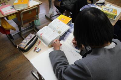社会科では、「国土の自然とともに生きる」という単元について学習を進めています。この日は、日本での過去の自然災害について調べました。熊本地震を経験し能登半島地震での被害状況の報道を見ているので、決して人ごとだと感じていません。過去の自然災害から今できる自分たちの備えを考えていきます。