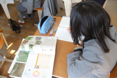 社会科では、林業についての学習をしています。私たちが暮らす東陽町には森林が多く、また、緑の少年団で木工教室を行うなど、森林は5年生にとって身近な存在です。林業にたずさわる人々の工夫や努力、森林資源が果たす役割、今後の国民生活との関連などを調べていきます。