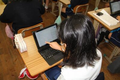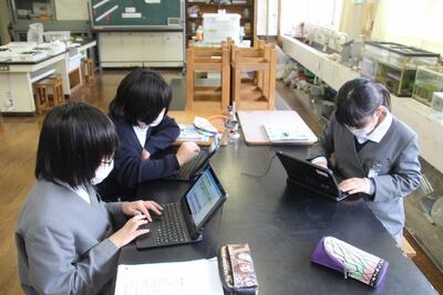 理科では、人のたんじょうについて学習しています。この日は、人・メダカ・植物の育ち方の違いについて考えました。自分の考えをタブレットPCに入力し、みんなで考えを共有しました。新たな視点を与えてくれた考えに、コメントを入力して伝え合いました。コメントをもらった児童がとてもうれしそうにしていました。