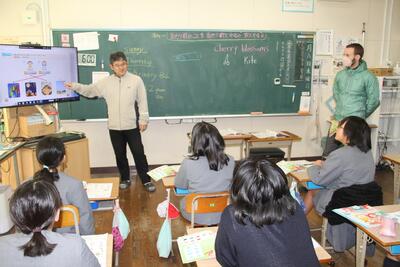 外国語科では、日本の四季や文化を紹介する学習しています。この日は、花見・月見・七夕・たこあげなどの日本の行事や遊びについて、クイズをつくったり答えたりする学習を行いました。行事・月日・すること・気持ちなどをつなげるヒントを考えて、クイズをつくりました。
