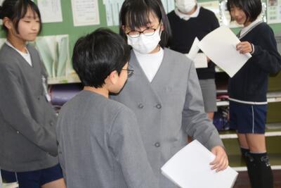 学級活動では、新1年生との交流会の準備を行いました。読み聞かせの絵本や紙芝居を準備したり、一緒に遊ぶ内容を決めたり、ひらがなの名札を書いたりしました。新1年生が早く学校に行きたいと思えるような交流会にしたいと5年生は張り切っていました。