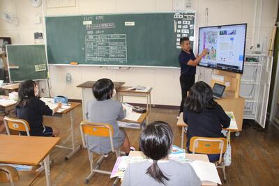 外国語では、ALTのJ先生が猫に仮装して、カナダでのハロウィンのイベントについて話してくれました。カナダの子どもたちがトウモロコシの迷路を、大人の人たちはパーティーを楽しんでいることを知ることができました。数年前から日本にもハロウィンの文化が根付いてきました。異国の文化を理解することはとても重要なことです。