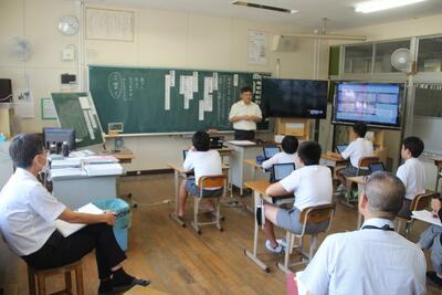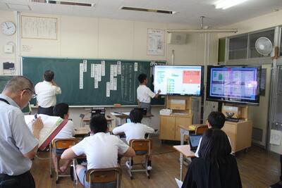 東陽小学校と東陽中学校の合同研修会を行いました。今回は、東陽中学校のM先生の1年社会科「巨大な工業生産力」と、S先生の2年理科「前線と天気の変化」の公開授業でした。どちらも知識構成型ジグソー法を活用した生徒主体の学習と、ICTを活用した定着確認の徹底などが行われていました。公開授業後は社会科グループと理科グループに分かれて、授業づくりについて語り合いました。その後、全員で意見や考えなどを共有し、八代市教育委員会のJ指導主事からまとめをしていただきました。児童生徒の主体的な学びをつくるために、校種の垣根を越えて9年間で育む力について考え実践に踏み出す貴重な機会となりました。東陽中学校のM先生とS先生、八代市教育委員会のJ指導主事、ありがとうございました。