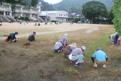 運動会前の愛校作業を行いました。前日の雨で順延して行いましたが、たくさんの児童生徒・保護者の皆さんに参加していただきました。運動場周辺の草取り・花壇の整備・校舎周辺の草刈りなどをしていただき、とても美しい環境になりました。これで、気持ちよく運動会が迎えられます。参加してくださった皆さん、ありがとうございました。