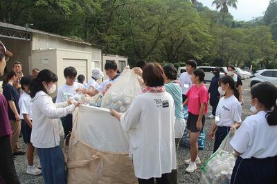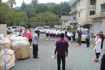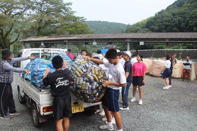 小・中学校PTA合同の資源回収を行いました。PTA地区委員の方が各地区から軽トラック等でアルミ缶やビール瓶・一升瓶等を東陽中学校へ運んでくださいました。PTAの役員の方や中学校の先生方・生徒のみなさんが、集まったものを袋やケースに分別していきました。作業は1時間ほどで終了しました。たくさんの資源物が集まりました。この益金は児童生徒のために大切に使わせていただきます。ご協力いただいた地域の皆様、PTA会員の皆様、ありがとうございました。