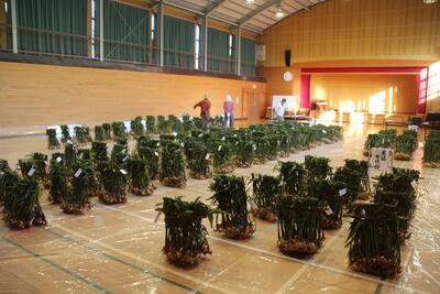 体育館に並んだしょうが