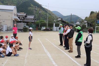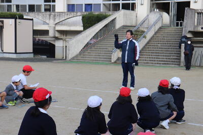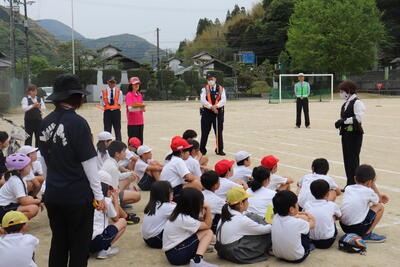 交通安全教室では、校長先生や関係機関の方々による交通安全についての話の後、