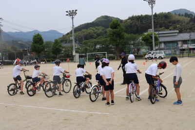3~6年生は自転車の安全な乗り方の説明や実技が行われました。