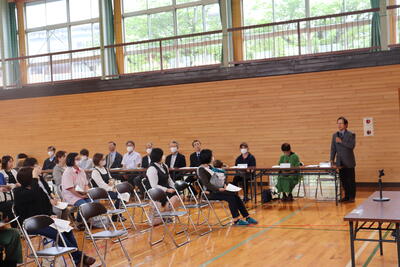 総会での議案等について、役員さんからの説明をうなずきながら聞いてくださる保護者もおられ、
