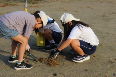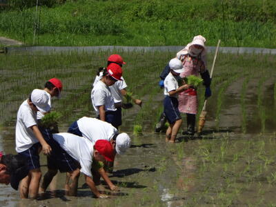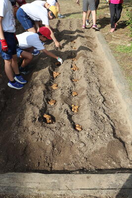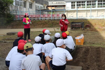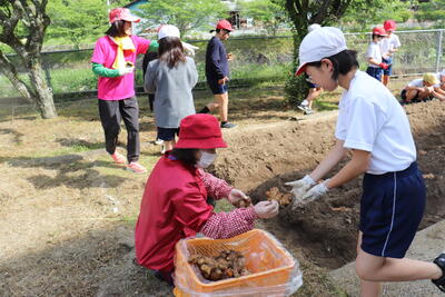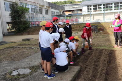 6年生が東陽町の特産品であるショウガの植え付けを行いました。