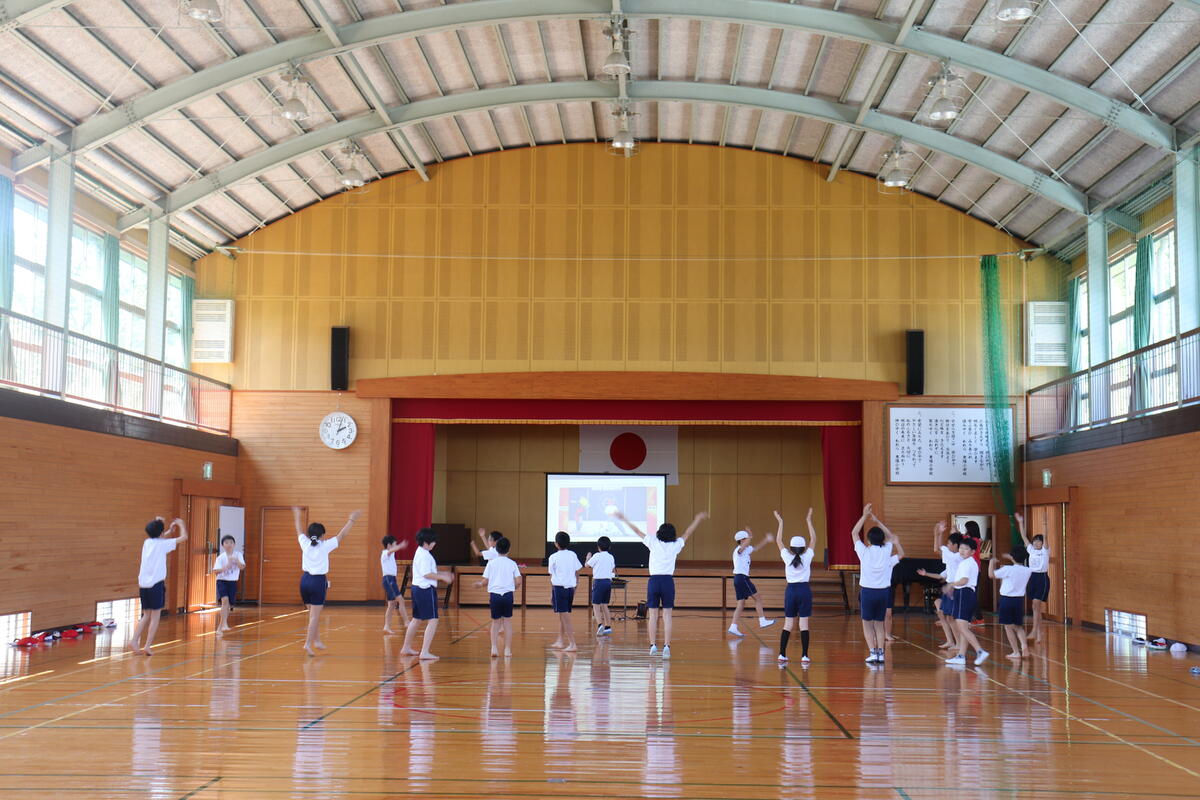 また、途中途中、子ども達に体育館を手でさわり、音の響きを体感させられたり、