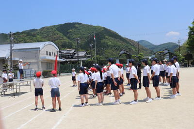 小中合同運動会に向けて、対面式・結団式を行いました。