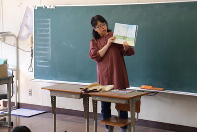 読み聞かせでは、巨大絵本を委員会の児童が読んでくれました。