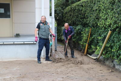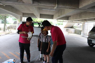 ここでは、消防車両の見学や消火訓練等を行いました。
