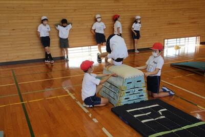 体育科では、とびばこ運動の学習が終わりました。開脚跳び・かかえ込み跳び・台上前転・首はね跳びなどの技を練習しました。動きの感覚づくりでは、腕支持の動きや切り返し・回転などの動きをつかみました。この日は、台上前転や首はね跳びの回転系の技にチャレンジしました。みんなで安全に協力して活動することができ、上手になりました。