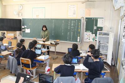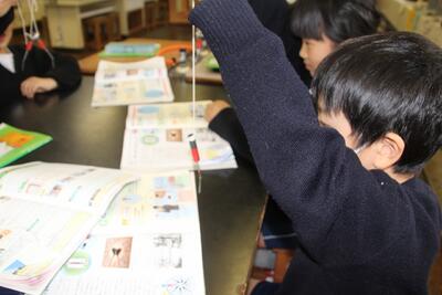 国語科では、説明文を読んで感想を持ち、伝え合う学習をしています。この日は、「中」の段落の読み取る活動を行いました。キーワード・接続語・指示語などを手がかりに、段落の関係を考えました。学習リーダーを中心に読み取ったことを伝え合いました。