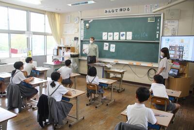 社会科では、地域でうけつがれてきたものについて学習を始めました。この単元では、熊本県の伝統文化などについて学習します。この日は、清和文楽の写真を見ながら気づいたことを出し合いました。地域社会に対する誇りと愛情、地域社会の一員として自覚を学びます。