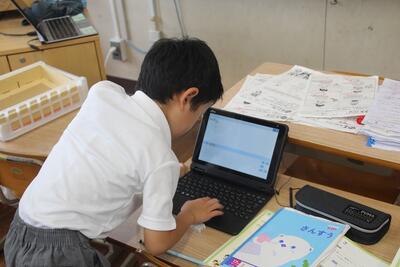 算数科では、2位数同士のたし算・ひき算の暗算の学習を行いました。タブレットPCに答えとやり方を入力し、学習リーダーを中心にして、自分たちで考えを共有しました。自分たちで共有の画面を切り替えて進めている姿に成長を感じました。