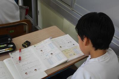 算数科では、資料のちらばりについてドットプロット・度数分布表・ヒストグラムを用いた分類・整理の仕方や、代表値の意味などを理解し、統計的に問題解決する力を身に付け、生活などに生かす学習をしています。この日は、学習リーダーを中心に資料の整理の仕方について学習しました。いくつかの区分に分けて資料のちらばりを整理しました。
