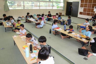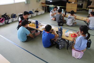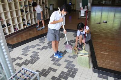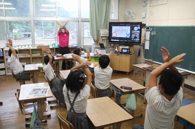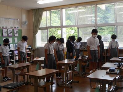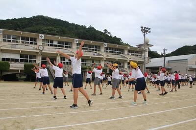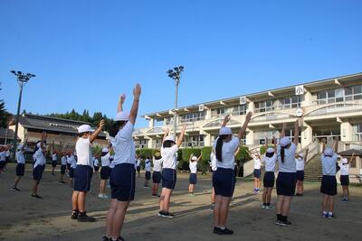 朝の活動ではランニングタイムを行っていましたが、激しい運動をするには危険な暑さになってきました。この日から7月は、朝のランニングを控え、教室でラジオ体操のみを行うことにしました。