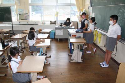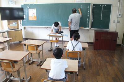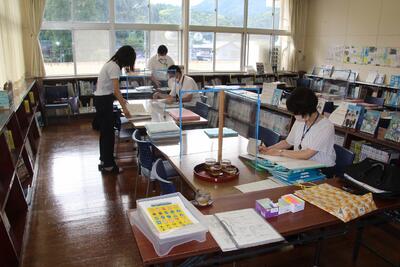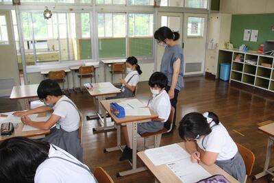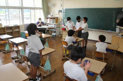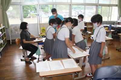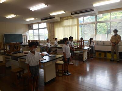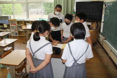 八代市には理科支援員の先生がいて、各学校を巡回して授業の支援をしてくれます。この日は本校への来校日で、5・6年生の理科授業のサポートをしてくれました。6年生は月と太陽、5年生は流れる水の働きの学習でした。教材や実験の準備をしてもらい、子どもたちは理科の世界に入り込んでいました。理科支援員のO先生、ありがとうございました。