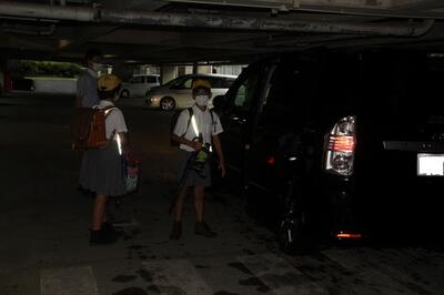 心配な面もあります。学校から出て行く車と徒歩で登校する児童がすれ違う場面があります。また、雨が強くなってきたら、ピロティーで雨をしのぐ徒歩でやってきた児童もいます。このような際はお互いに気をつける必要があります。雨の日には、特に児童の安全を守ることを心がけています。