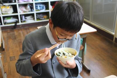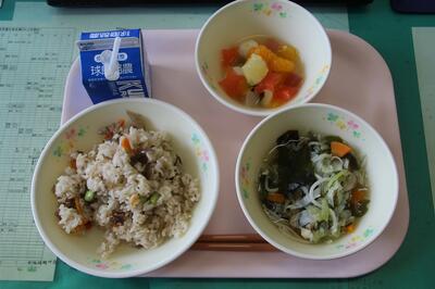 9月29日に紹介した栗が、この日「栗おこわ」として給食に登場しました。栄養教諭のM先生が子どもたちに、地域の方が栗を提供してくれたこと、栗の皮をむいてくれたことなどを話しました。みんなおいしそうに食べていました。この栗おこわに関わってくださった地域の方や給食センターの皆さん、ありがとうございました。