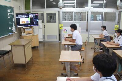 画面を共有して、画面に映し出された自分の考えを発表しました。いつもの雰囲気と異なり、大人がたくさん見ている中、発表する姿はステキでした。