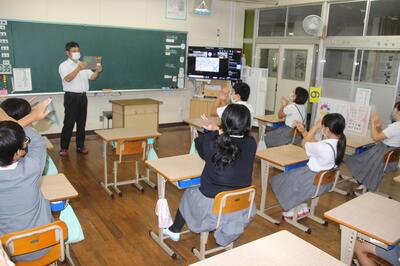 今日は、5年生はリコーダーの演奏について、6年生はオーケストラの演奏について学習しました。ピアノの生伴奏で歌わせていただいたり、リコーダー演奏のお手本をしていただいたり、タブレット端末でたくさんの楽器の音色を聴かせていただいたりなど、東陽っ子だけでなく、HP担当者も音楽の世界を満喫しました。ステキな時間を過ごすことができました。東陽中学校のO先生、ありがとうございました