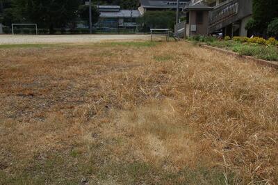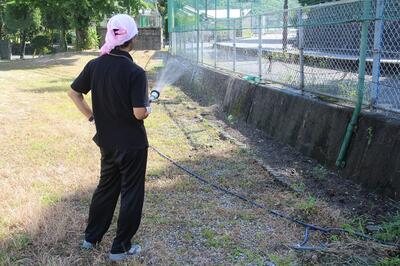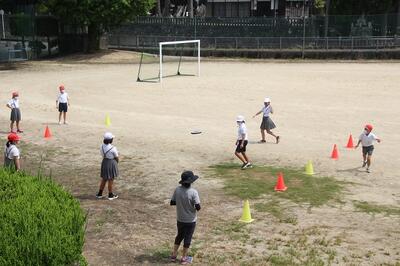 この日の昼休みは、木陰でサッカーをしたり、ドッジボールをしたりしている子どもたちが多くいました。帽子をかぶったり水分補給をこまめにしたりすることで熱中症予防ができます。