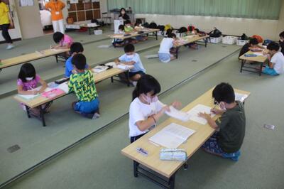 3年生は理科のテスト、4年生は社会科でゴミ処理施設の学習をしていました。